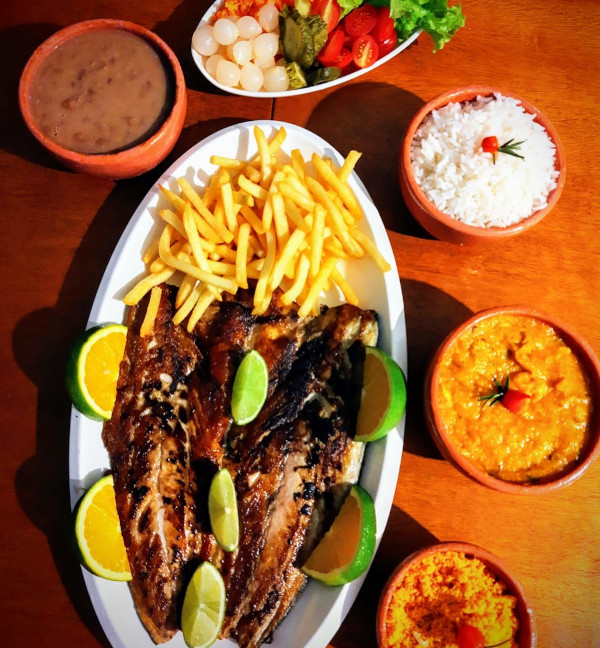 ACOMPAHA ARROZ, FEIJÃO, PIRÃO, FAROFA, SALADA E BATATA FRITA